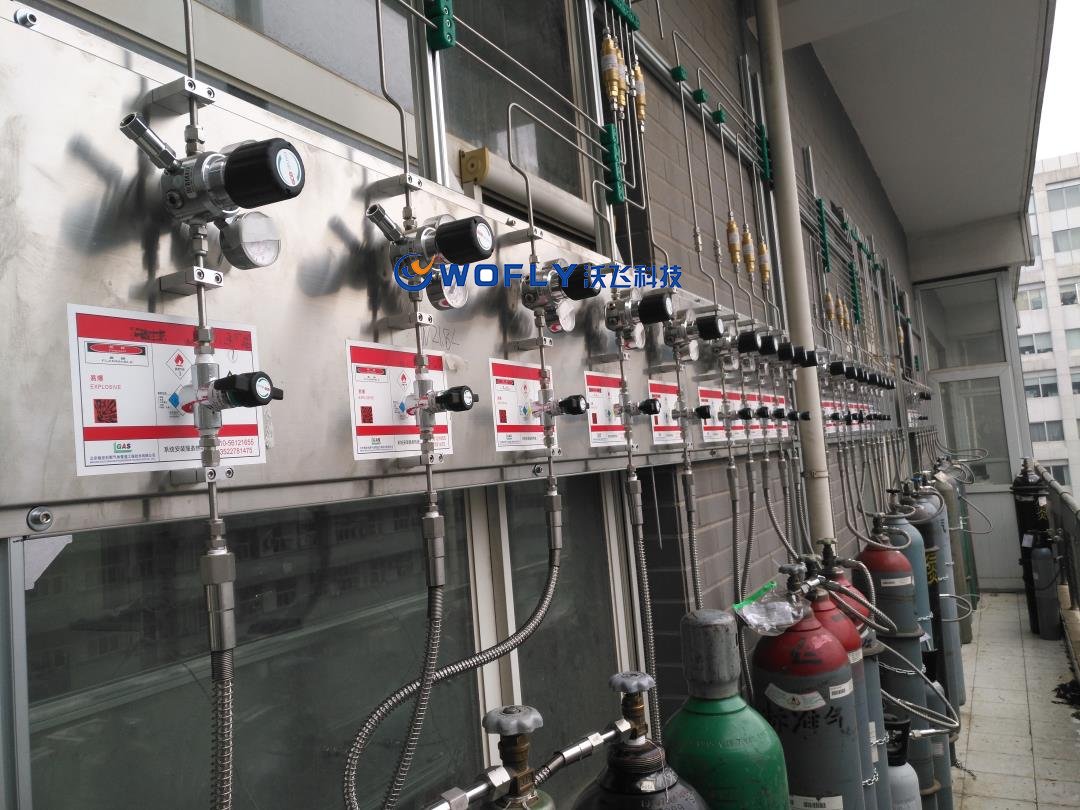 1、氣源部分:氣瓶(氣源)集中安置在特定的氣瓶間,通過(guò)一級(jí)減壓系統(tǒng)(氣體減壓器或匯流排)裝高壓氣體轉(zhuǎn)化成低壓氣體。