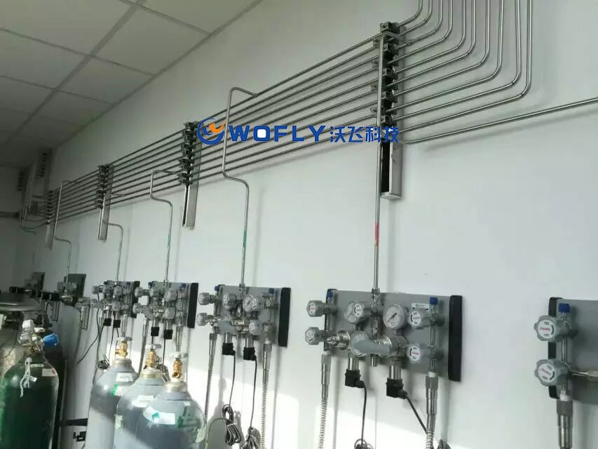 指氣瓶至儀器終端之間連接管線,一般有氣體切換裝置-減壓裝置-閥門-管線-過濾器-報警器-終端箱-調節(jié)閥等部分組成,輸送氣體為實驗室儀器(色譜、原子吸收等)用氣、高純氣體。